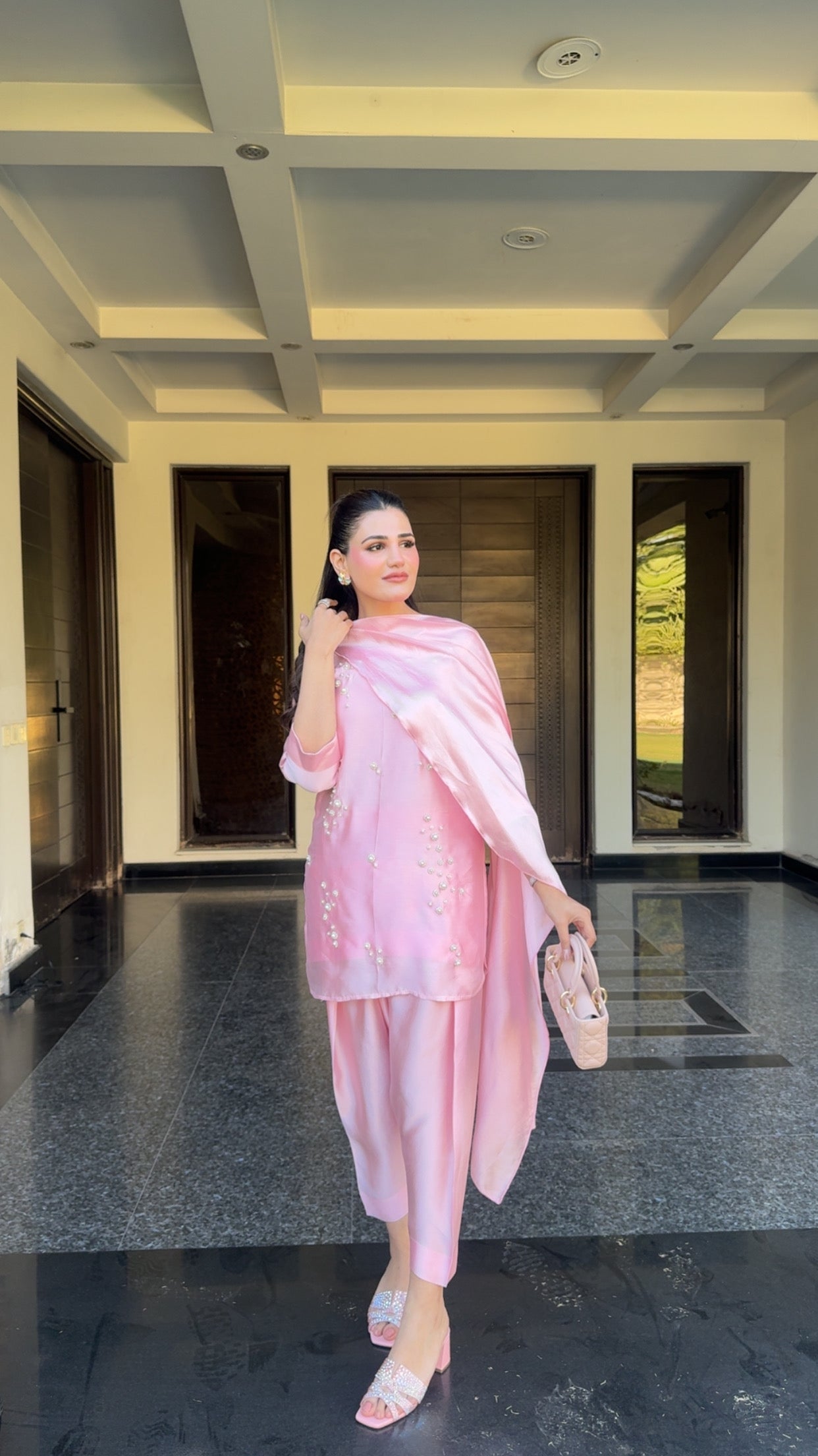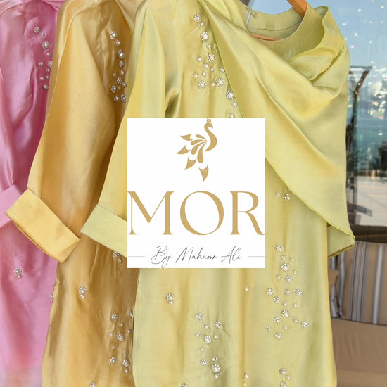 It has the attached trending scarf which is draped gently from one side of the neckline and can be worn in different ways. A short shirt fully lined (fusing) with rounded hems paired with a skinny shalwar. We’ve thought it all through! Making it a true celebration of modern, chic and understated luxury 🤌🏽